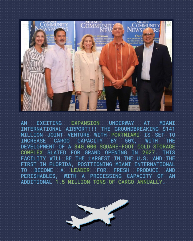 At a recent Coffee & Pastelitos event, Ms. Laura Weinfeld joined key figures like Ralph Cutie, Director & CEO of Miami-Dade Aviation, and Juan Liscano from American Airlines, to learn about the exciting expansion underway at Miami International Airport. The groundbreaking $141 million joint venture with PortMiami is set to increase cargo capacity by 50%, with the development of a 340,000 square-foot cold storage complex slated for grand opening in 2027. This facility will be the largest in the U.S. and the first in Florida, positioning Miami International to become a leader for fresh produce and perishables, with a processing capacity of an additional 1.5 million tons of cargo annually. The American Airlines’ Miami hub will also play a crucial role in this event, enhancing services for aviation clients, as discussed in the meeting Ms. Weinfeld attended. As an experienced attorney handling aviation-related clients, what an experience for Ms. Weinfeld to witness firsthand!