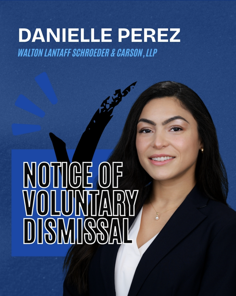 We are thrilled to announce another Walton Lantaff victory, once again delivered by Ms. Danielle Perez! Coming off of her big Motion for Summary Judgment win she recently had on another file, Ms. Perez secured another exceptional result of a Notice of Voluntary Dismissal mid-deposition — a truly rare legal occurrence — amidst a contentious property damage dispute. Her determination and strategy are great assets to our office, and we congratulate her in her success!