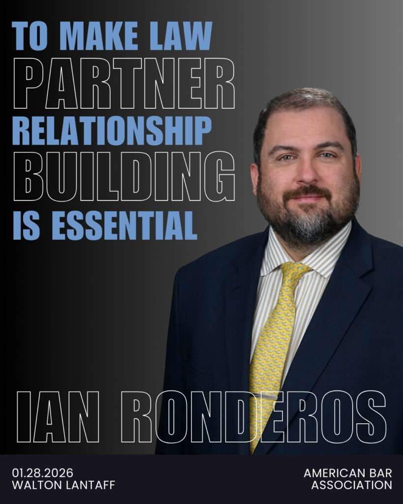 Senior Partner Ian Ronderos recently authored an article — “To Make Law Firm Partner, Relationship-Building Is Essential” — for the American Bar Association! In his guide to professional advancement, he draws upon his lived experience to provide young lawyers with clear advice tailored to the end of securing a partnership in a firm.